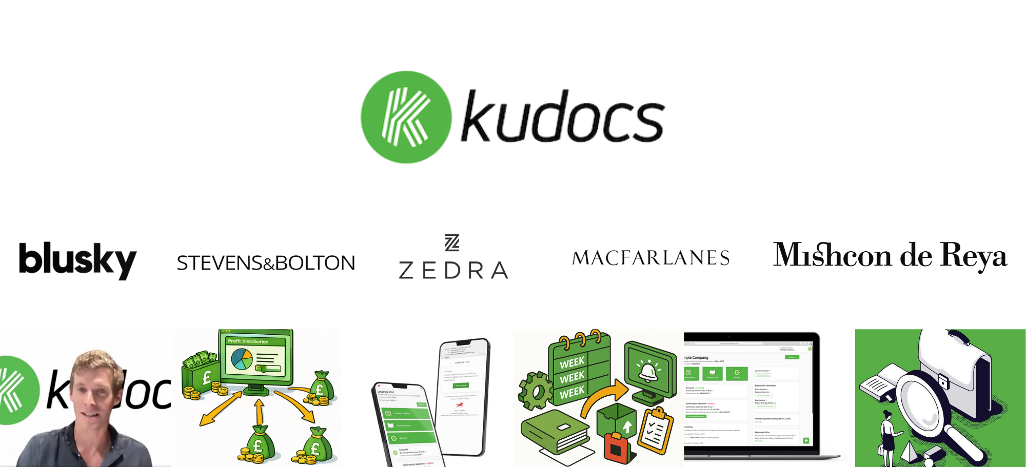 Kudocs simplifies company management for professional advisers and businesses. Their platform enables corporate tasks to be completed digitally and recorded in real time, removing administrative friction and automatically handling Companies House filings.